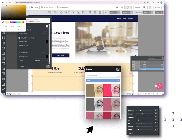 The editor provides full flexibility to create personalized interfaces tailored to each client’s needs, enhancing user experience and boosting digital success.